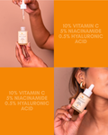 This advanced serum is powered by a high-performance blend of 10% Vitamin C, 5% Niacinamide, and 0.5% Hyaluronic Acid—three dermatologist-loved actives that work synergistically to improve skin clarity, even tone, and strengthen the skin barrier.