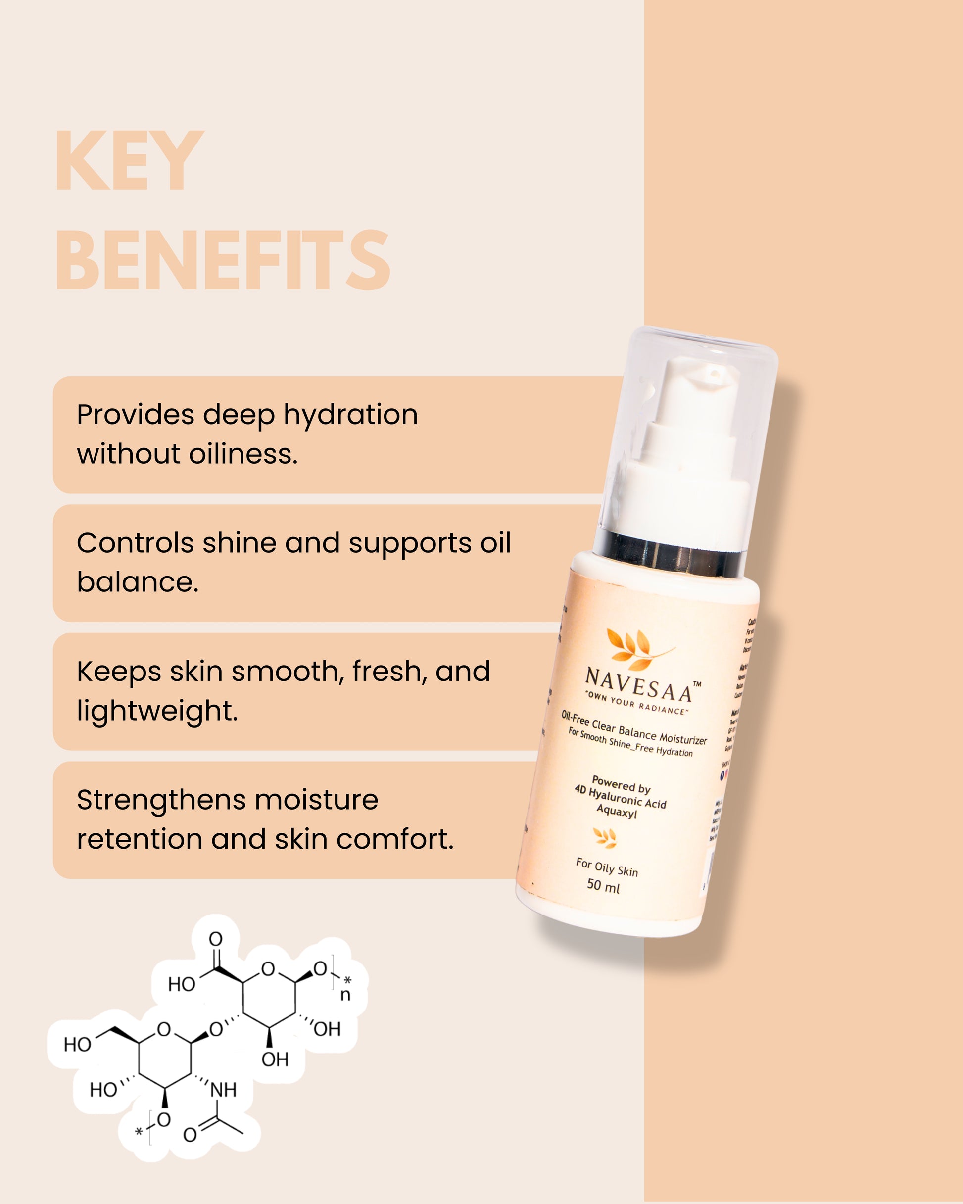 Balance hydration without shine using NAVESAA Oil-Free Clear Balance Moisturizer, a refreshing, non-comedogenic formula designed specifically for oily skin.
