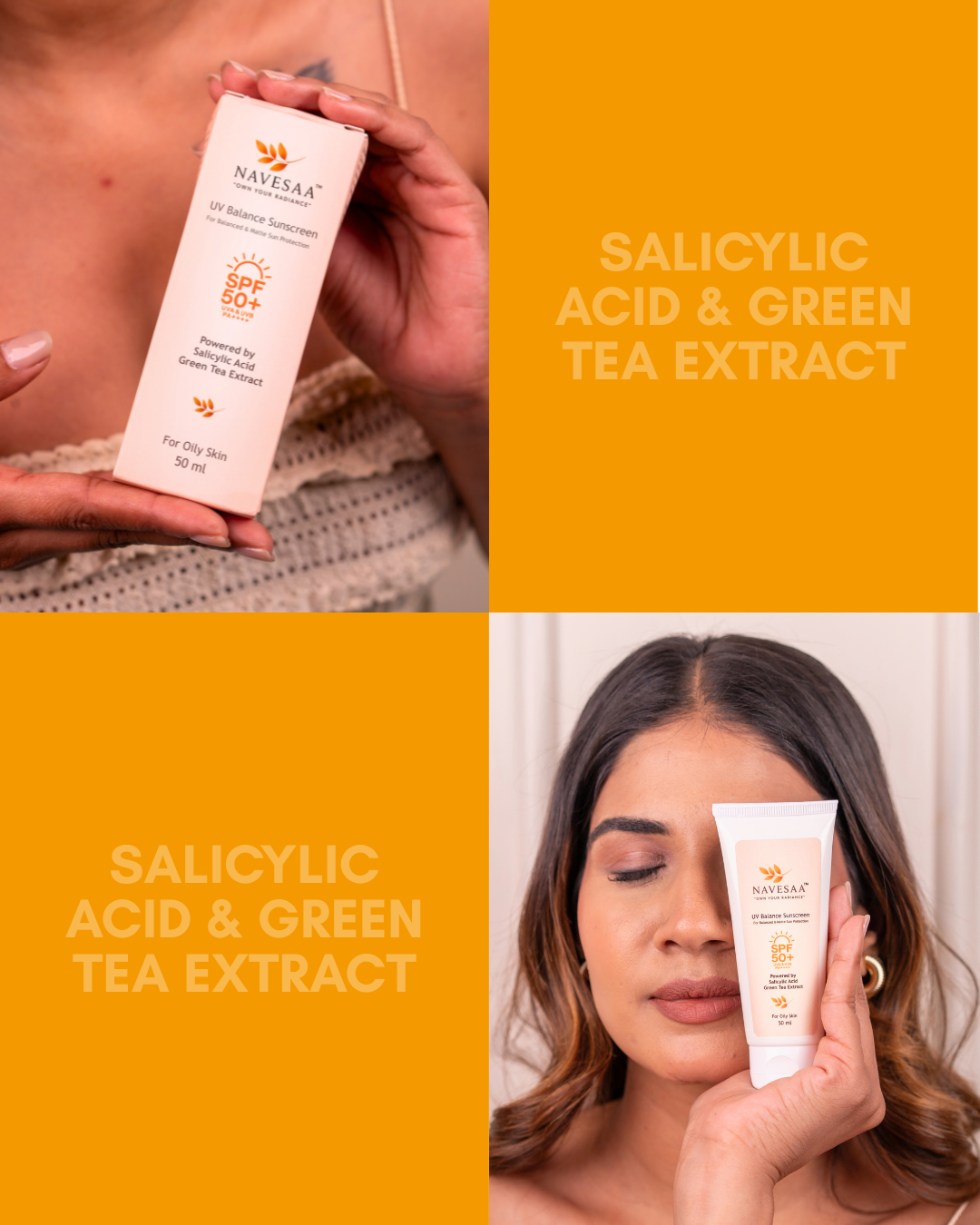 Protect your skin without the grease with NAVESAA UV Balance Sunscreen SPF 50+, a lightweight, oil-controlling sunscreen specially formulated for oily skin.