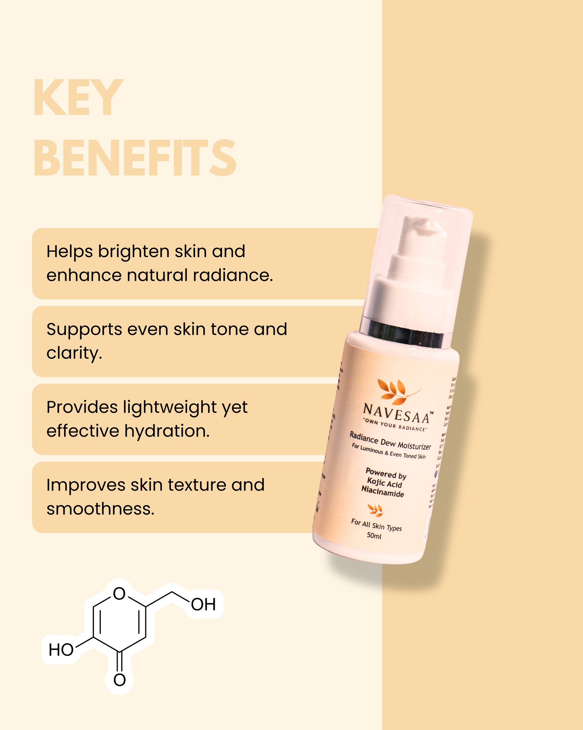 Reveal soft, radiant skin with NAVESAA Radiance Dew Moisturizer, a lightweight daily moisturiser formulated to hydrate, brighten, and visibly even out skin tone.